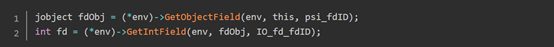 上面的代码是从SocketImpl中的bind方法的jni实现中的,可以看出他先获取了FileDescriptor对象也就是SocketImpl的fd,然后再根据FileDescriptor获取到他的fd我们最终使用的文件描述符,而文件描述符也是int类型的,所以在java中的socket方法返回的也是int类型。