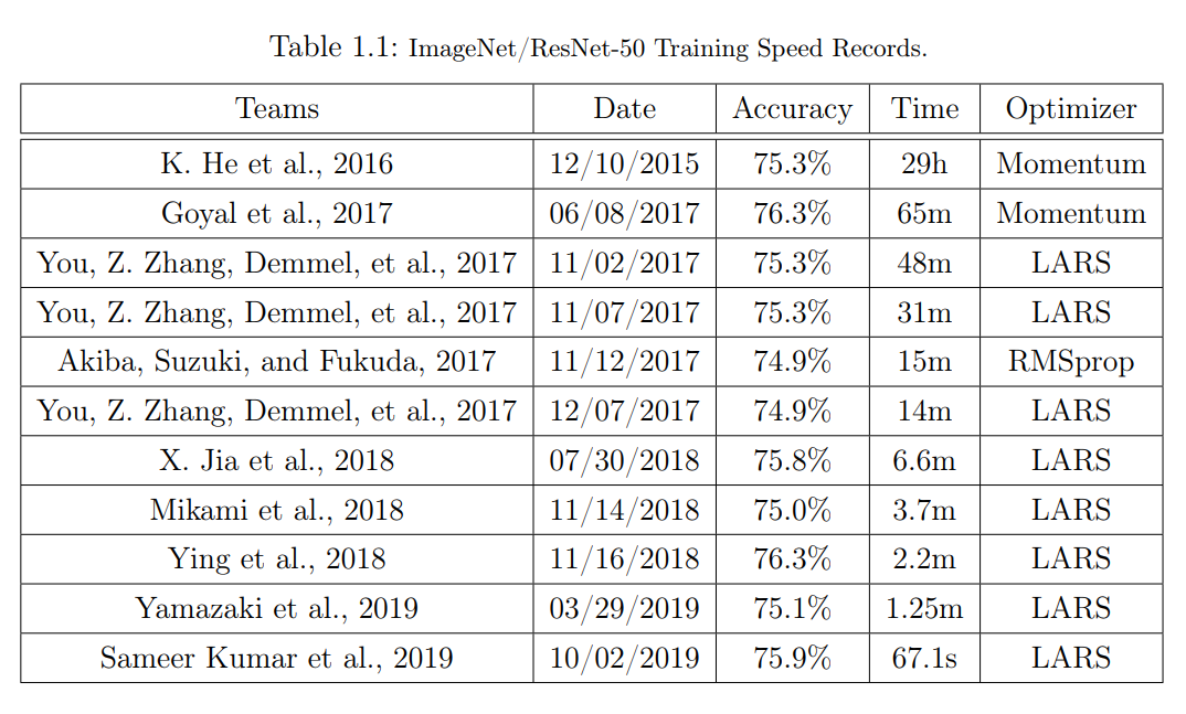 这篇论文聚焦于快速且准确的机器学习训练。尽管生产团队希望能够充分利用超级计算机来加快训练过程,但传统的优化器无法扩展到数千个处理器。该研究设计了一系列基础优化算法,来为深度学习系统实现更强的并行度。这些算法为谷歌、英特尔、腾讯、英伟达等公司的 SOTA 分布式系统提供了支持。