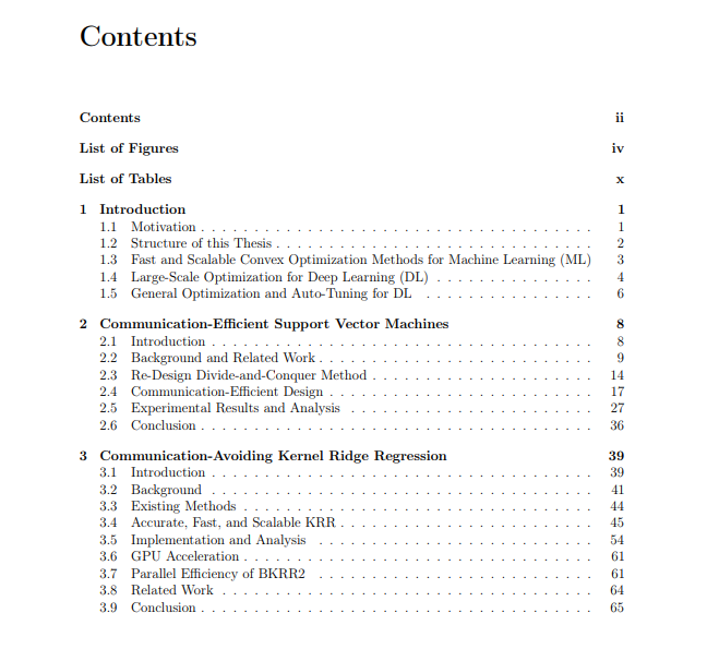 第二章详细讲解了通信避免的 SVM(communication-avoiding SVM),第三章详细介绍了通信高效的 KRR(communication-efficient KRR),第四章详细介绍了异步贪心坐标下降(Asy-GCD)。
