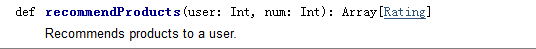 scala> val topKRecs = model.recommendProducts(userid, k)