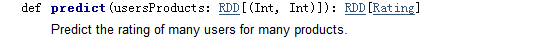 var predictions = model.predict(usersProducts).map { case Rating(user, product, rate) =>((user, product), rate)}
