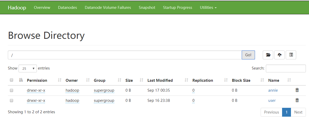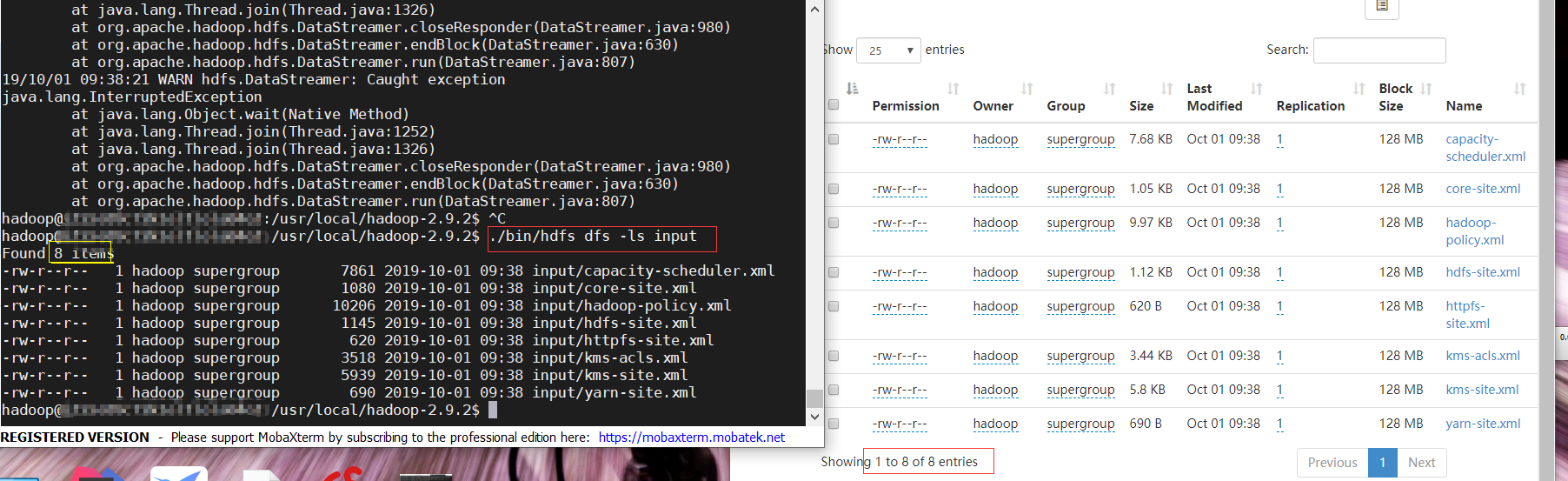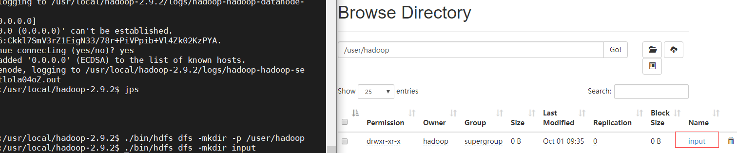 - -列出文件目录(./bin/hdfs dfs -ls input)