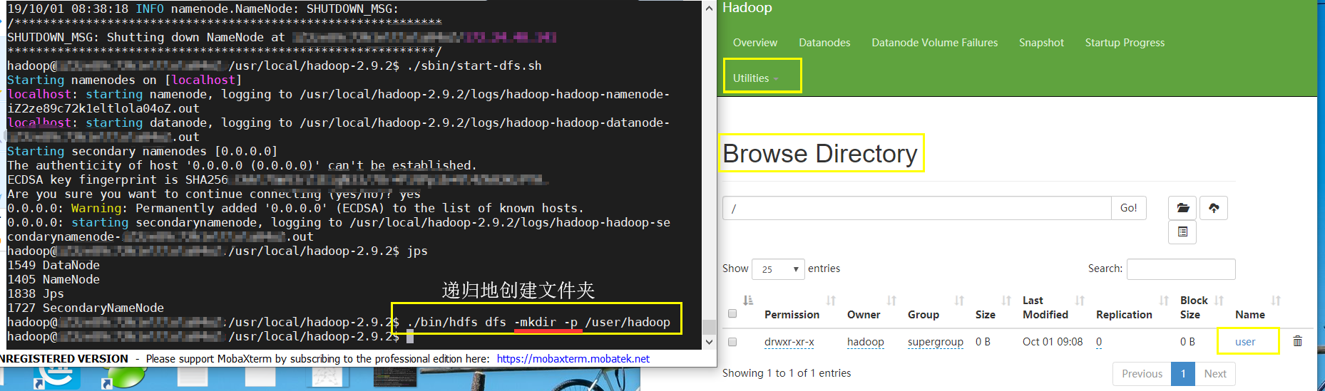 但hadoop-2.9.2的权限得改,因为hadoop-2.9.2文件默认拥有者是root。