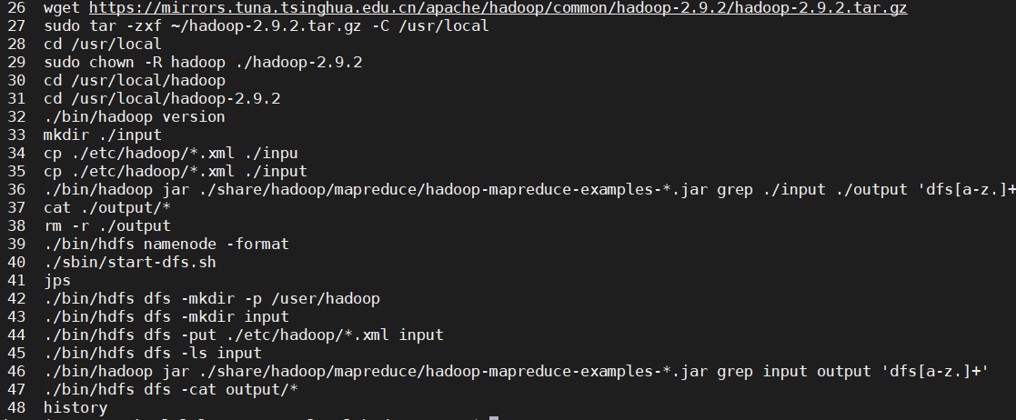 wget https://mirrors.tuna.tsinghua.edu.cn/apache/hadoop/common/hadoop-2.9.2/hadoop-2.9.2.tar.gz