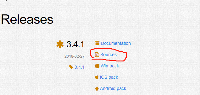 opencv3.4.1链接如下图点击Sources下载得到opencv-3.4.1.zip