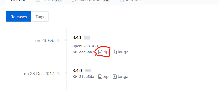 opencv3.4.1 Contrib下载如下图点击zip下载