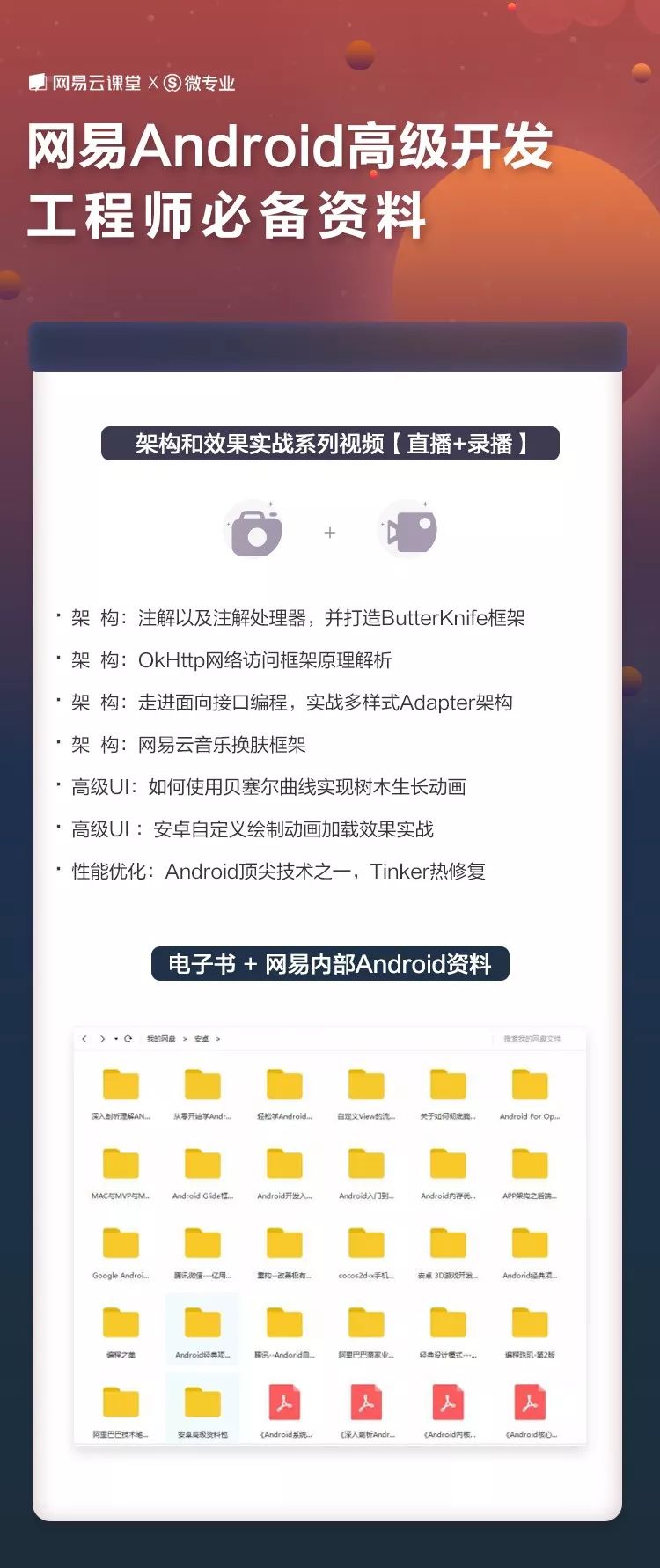 但!是!如果你观看了网易云课堂的Android高级开发视频教程,一定会让你的修炼过程事半功倍。最重要的是,这些视频资料全部都是干货,并且完全免费,这还有什么好犹豫的吗?