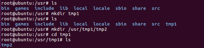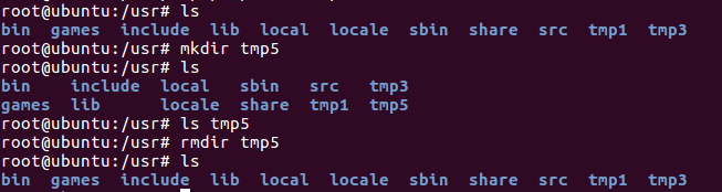 在/usr中创建一个新目录tmp5,可以使用rmdir直接删除它。