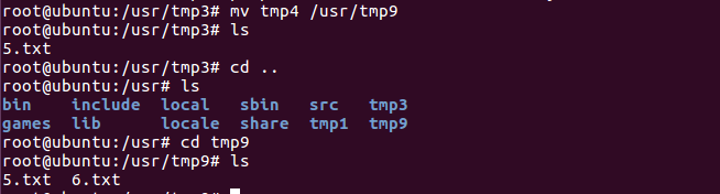 这里,/usr/tmp9是不存在的,所以将tmp4移动过去后,就会同时改名。 当源目录和目标目录在同一父目录下,其实就是对原目录进行了重命名操作。