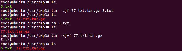 打包后bzip2压缩: tar -cjf 文件名.tar.bz2 文件名