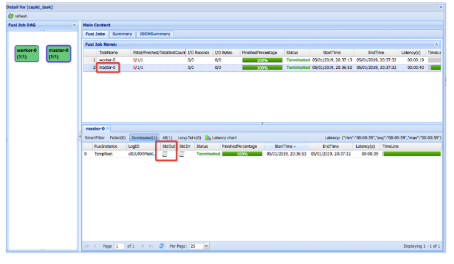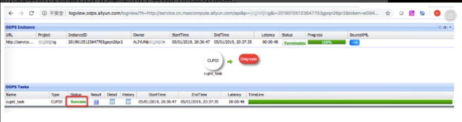- 通过日志输出的logview在浏览器中可以查看CUPID类型的任务执行的基本信息。