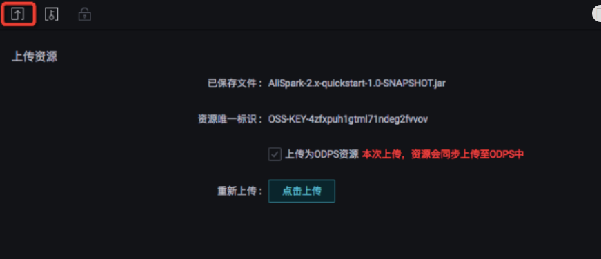 用户需要在DataWorks的业务流程中上传并提交(记得要单击"提交"按钮)资源: