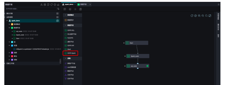 Spark作业定义完成后,即可以在业务流程中对不同类型服务进行编排、统一调度执行。