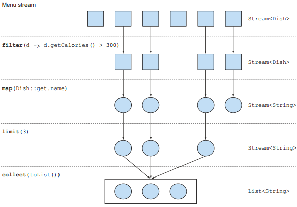 3. Stream(流):从支持数据处理操作的源生成的元素序列(A sequence of elements from a source that supports data processing operations)。