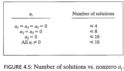 逆解个数取决于机器人关节数目(the number of joints)、机器人的构型(link parameters)以及关节运动范围(the allowable ranges of motion of the joints)。决定机器人构型的D-H参数表中的非零值越多,就有越多的解存在。对于通用型6轴转动关节的机械臂来说,最多可能存在16个不同的解。下图展示了最大解的数量与非零值的连杆长度参数aa (两关节转轴之间的最短距离,即两轴线之间公垂线的长度)的数量之间的关系:
