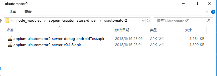 在appium-uiautomator2-driver下新建一个uiautomator2目录,把下载的2个apk放进去就可以了