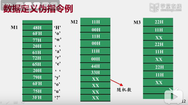 $$ \begin{array}{l}{\text { M1 DB 'How are you?" }} \ {\begin{array}{ll}{\text { M2 DW 3 DUP(11H), 3344H }} \ {\text { DB } 4 \text { DUP ( 2 ) }} \ {\text { ( M3 DB 3 DUP (22H, 11H, ?) }}\end{array}}\end{array} $$