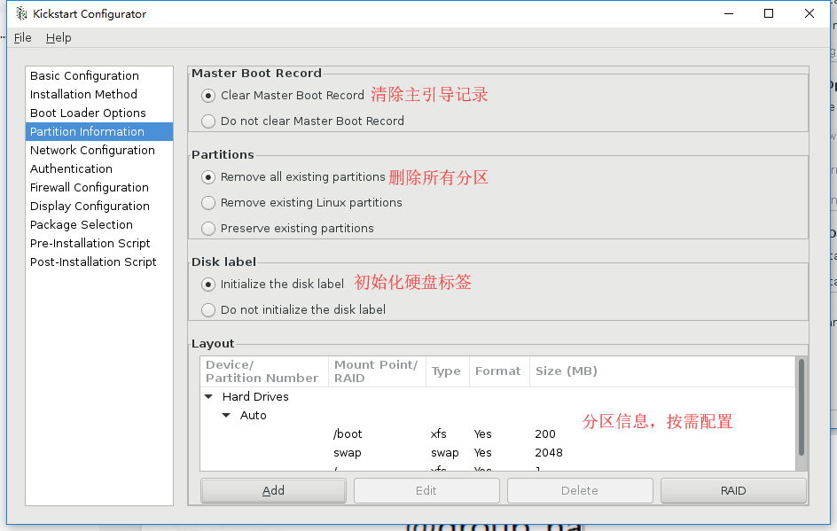 kickstart为anaconda安装系统过程中自动应答已配置好的选项,实现无人值守安装系统。
