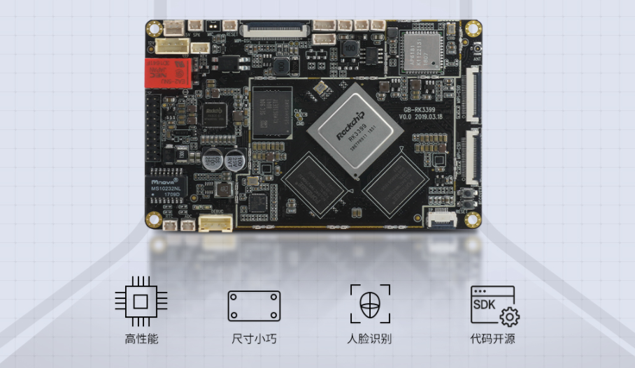 Face-RK3399人脸识别主板,尺寸小巧,性能强悍,拥有强大的人脸识别性能,适配多种人脸识别算法,支持多种识别模式,丰富的外围接口可搭载各种闸机安防外设,能满足门禁、考勤、刷脸支付等应用需求,以及提供一站式方案,开放配套资料,助力项目快速落地。