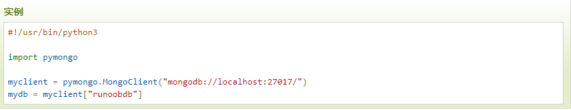 MongoDB 使用数据库对象来创建集合,实例如下: