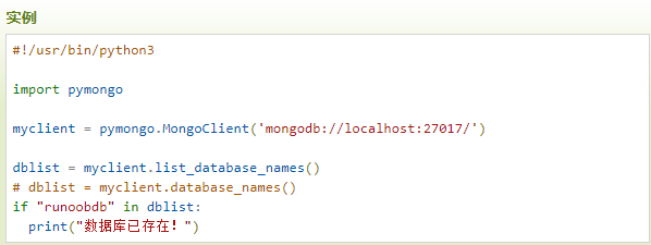 我们可以读取 MongoDB 中的所有数据库,并判断指定的数据库是否存在: