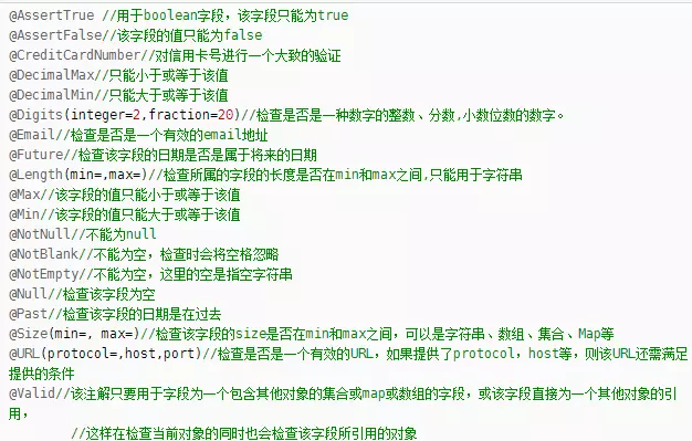 SpringBoot的Web组件内部集成了hibernate-validator,所以我们这里并不需要额外的为验证再导入其他的包,接下来我们先来看看SpringBoot为我们提供了哪些验证。