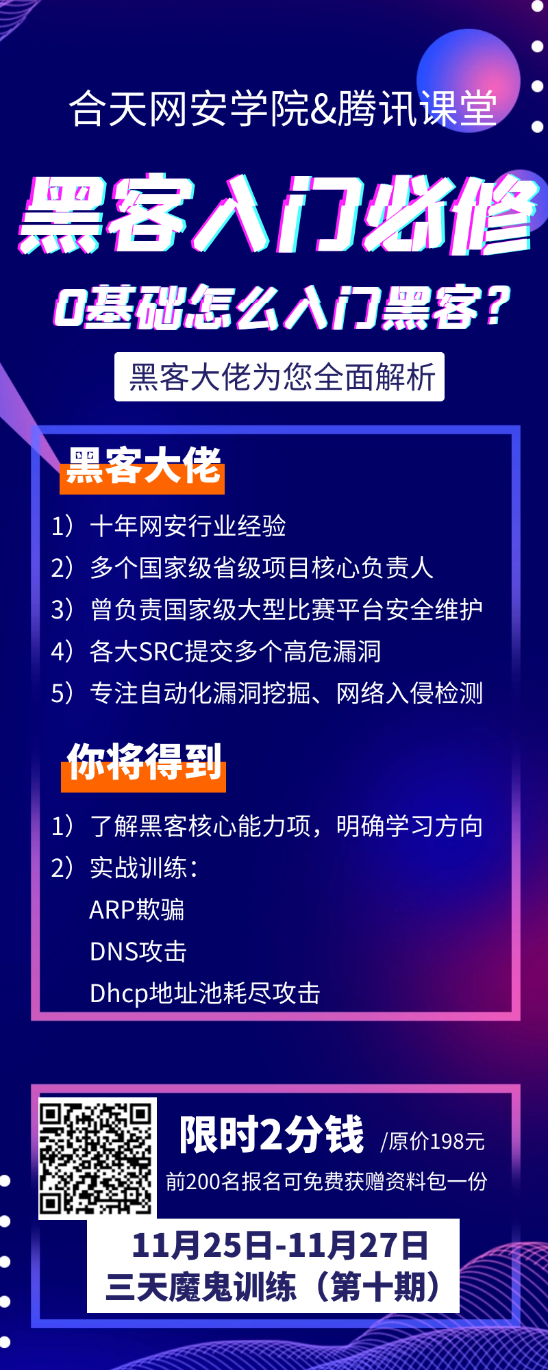 为了帮助致力于在渗透测试路径中深扎的同学更有方向、更有方法地成长,我们开设了一门 —— 3天《黑客入门必修训练营》。