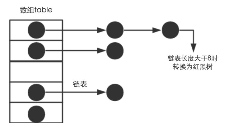 但在jdk1.8之后,HashMap就发生了改变,如果当前链表的长度大于阈值(默认是8)那么该链表就转换成红黑树,加快了搜索速度。