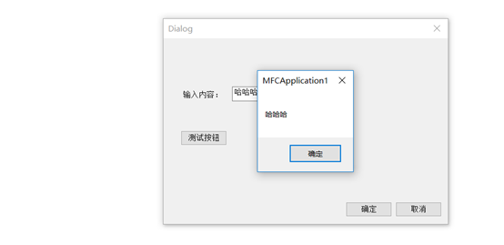 运行程序,调出弹窗,并在文本框中写入内容,点击按钮,可以看到,文本框中内容通过小窗口显示了出来: