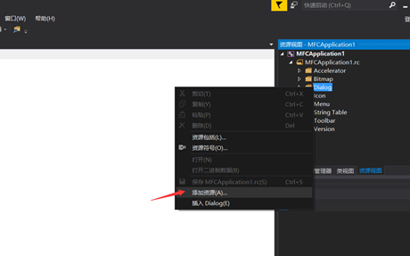 在资源视图中,右键Dialog->添加资源,然后选择Dialog点击新建,即可创建成功。