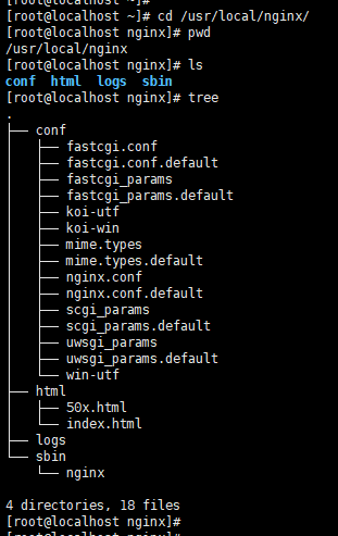 解压Nginx源码包到/root/nginx,并查看Nginx源文件结构