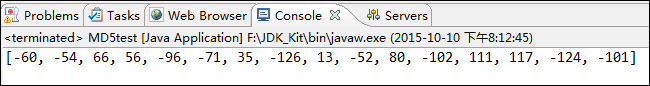 获得的字节数组都是128位,即16字节。换句话说经过MD5后的字符数组中有16个元素,因为Java中byte的范围为-128~127,所以每个元素都在这范围内: