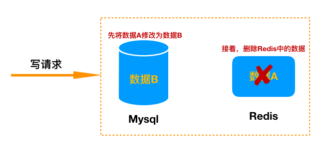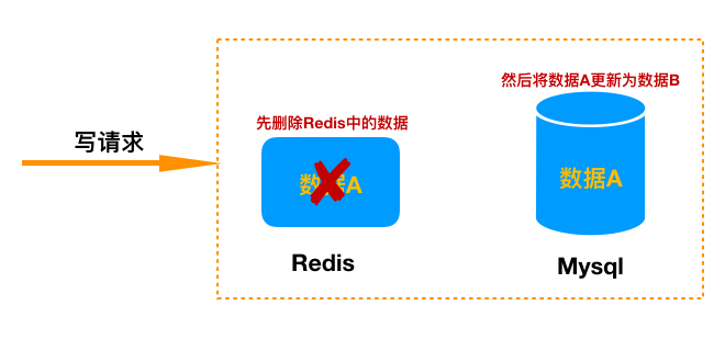 写请求先删除Redis中的数据,然后去数据库进行更新操作。