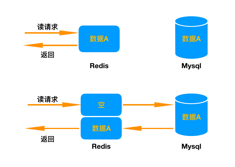 读请求判断Redis中有没有数据,没有数据时去请求数据库,拿到数据后写入缓存中。