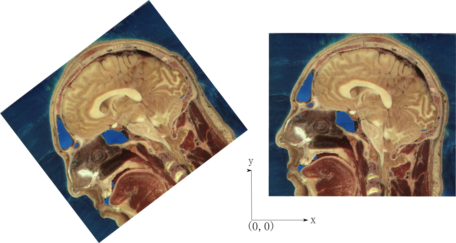 两幅图内容一样,但是方向和坐标原点都不同,在SimpleITK中是不同的图像