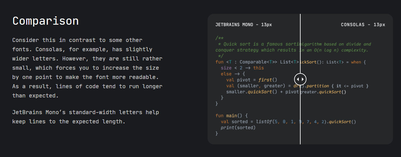 特地去了下 JetBrains Mono 官网,看起来还是挺舒适的: