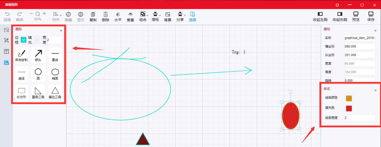 (7) 组态建模可以自定义画任意图形,并且填充颜色等。