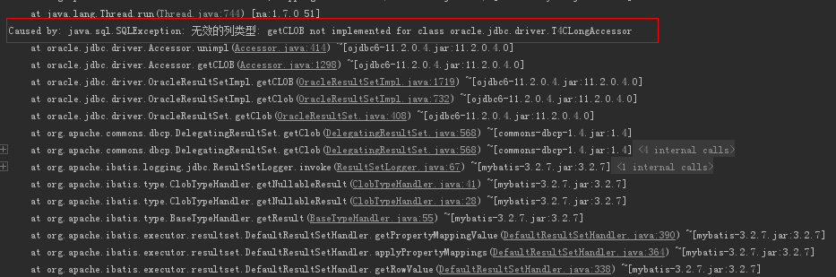 前言:mybatis 接收 oracle 中 LONG 类型的,报错:无效的列类型: getCLOB not implemented for class oracle.jdbc.driver.T4CLongAccessor