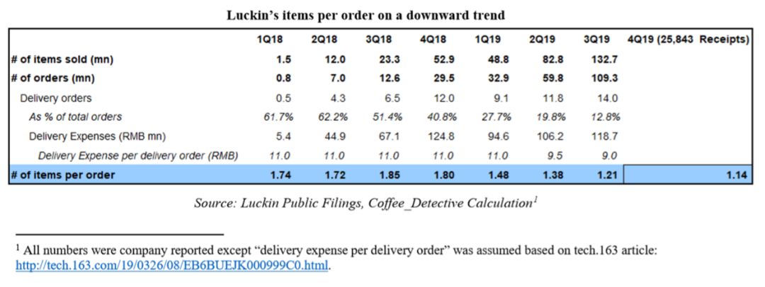 二是在分析外卖订单这个关键数据时,在需要“每单配送成本”(即下表中的Delivery Expense per delivery order)时,引用的居然是中国科技媒体平台网易上一个自媒体的大略估计。