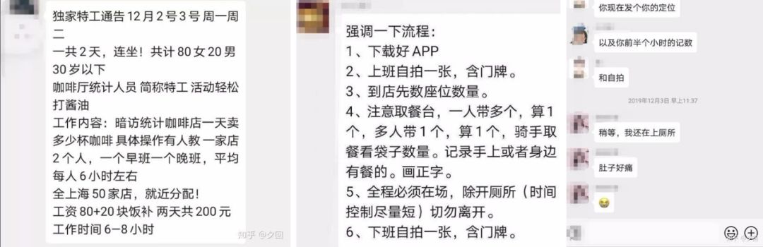 交给浑水公司报告的神秘组织,也是雇佣了大量兼职人员实地“数人头”估算单量,据知乎@夕回的爆料,主要是学校的学生,来源是各种兼职群: