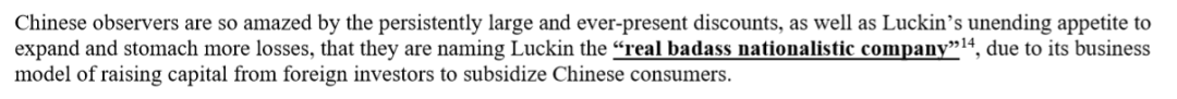 而报告另一方面又说瑞幸采取与星巴克全不相同的模式,据此暗示瑞幸也会过得不好。