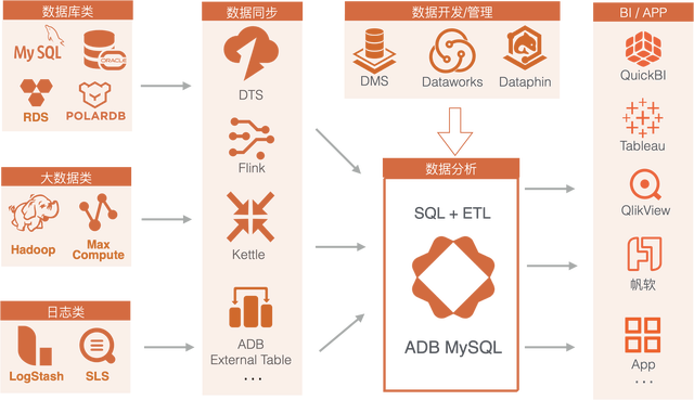 AnalyticDB全面覆盖数据仓库场景,包括报表查询、在线分析、实时数仓、ETL等,应用范围广。AnalyticDB兼容MySQL和传统数据仓库生态,使用门槛低。