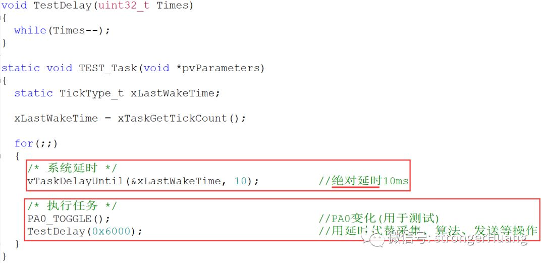 本文拿FreeRTOS中相对延时函数vTaskDelay,绝对延时函数vTaskDelayUntil来说明。
