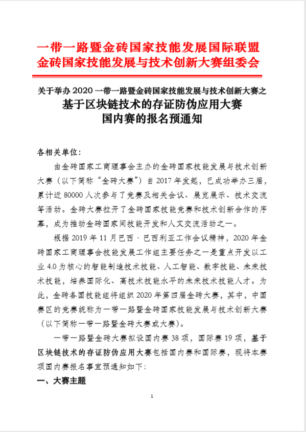 2020一带一路暨金砖大赛之基于区块链技术的存证防伪应用大赛国内赛报名表