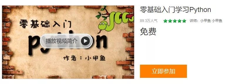 网易云课堂小甲鱼的Python入门教程,完全零基础入门,不需要任何前置知识。前半部分主要讲Python3的语法特性,后半部分主要是项目实战,包括 Python3在爬虫、Tkinter、Pygame游戏开发等实例上的应用。
