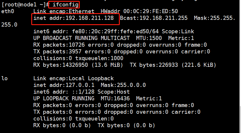 查看当前IP: (注意:是ifconfig 不是ipconfig)