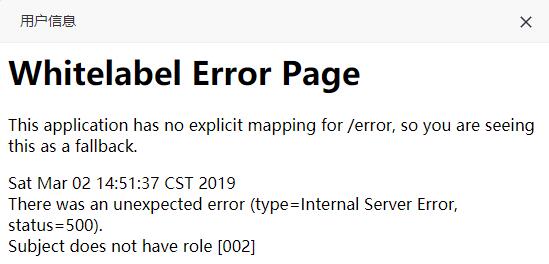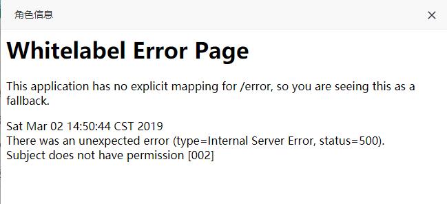 当使用用户002登录时,点击编辑按钮,显示正常,点击选择角色也是提示没002的权限,因为权限只有001。