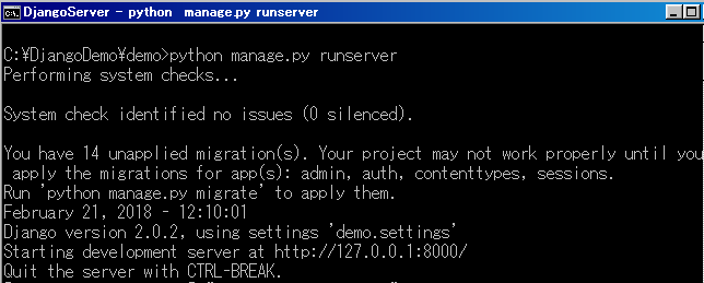 C盘创建一个目录就叫DjangoDemo,然后开始在该目录下操作。