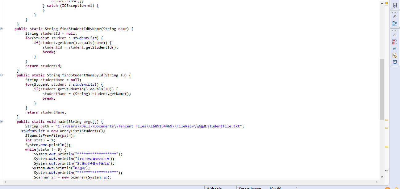 String path = "C:\\Users\\Dell\\Documents\\Tencent Files\\1689164469\\FileRecv\\实验三/studentfile.txt";