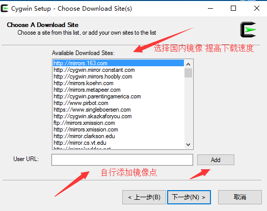 网易开源镜像站 :http://mirrors.163.com/,找到cygwin并添加路径